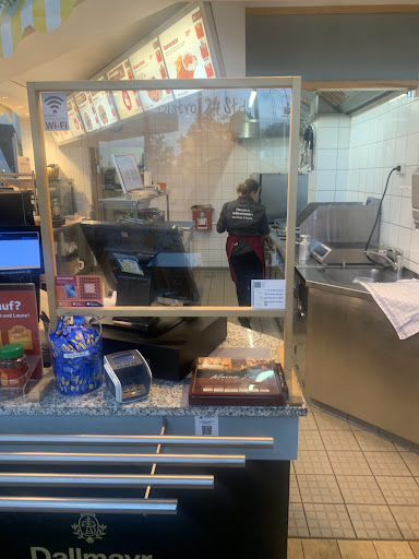 Da ekspedienten ikke snakker godt engelsk peger jeg på den menu som jeg gerne vil bestille , surt ansigt beder hun mig selfølgelig betale hvilket jeg gør .. jeg fortæller jeg lige skal flytte min mc da den holder ved tank standeren . Da jeg så kommer tilbage efter 2-3 min og gerne vil stå op og vente .. overfuser hun mig nærmest ved kassen og beder mig sætte og vente.. nok den mest sureste medarbejder jeg længe har mødt .. hun kommer derefter nærmest angribende med alle mulige tyske sprog gloser , da jeg ikke lige forstod hvad hun mente.