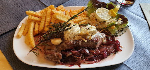Zum Essen: Echt gut. Pommes eine echte Empfehlung wert. Waren noch gross als sie net mehr so warm waren. Eine Seltenheit. Auch unser Essen war einfach und gut zubereitet. Bei Schweinesteck gab es Unterschiede: eins war flach und totgebraten, also recht trocken. Das andere Filet war etwas dicker und so saftiger. Darauf sollte die Küche mehr achten. Dafür war die Frischkostbeilage äußerst schmackhaft, weil selbst zubereitet. Am liebsten hätte ich mir diese Salatmischung extra bestellt. Beim nächsten Mal bestimmt. Dessert war net drin, da gesättigt. Denn vorher gab es eine leckere Soljanka. Auch diese war besonders, da keine reine Wurst- wie Fleischrestesuppe. Hier wurde mit Kassler gearbeitet. Super. Bissl mehr an Kassler beim nächsten Mal.