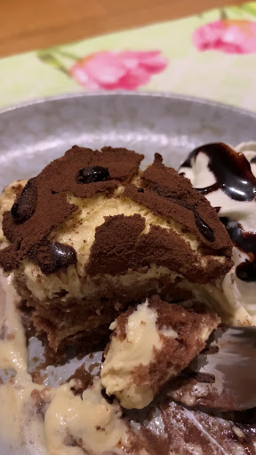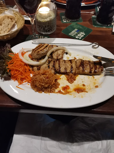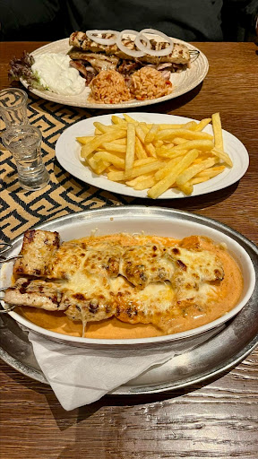 Hauptspeise: Meine Tochter hatte die Nr. 60 (Fleischspieß mit Pommes). Die Pommes waren nur lau und der Spieß war sehr trocken. Geschmacklich empfand sie es als ok. Macht aber kein Spaß zu essen, wenn man dabei immer etwas trinken muss. Meine Frau hatte die Leber in Metaxasoße + Brot. (88) Wieder nur 4 dünne Scheiben. Die Leber schwamm in der Metaxasoße und diese war echt hart am Salz. Leber ansich war gut. Leider, wie gesagt, sehr hart am Salz und es hat alles gleich geschmeckt, alles nach Leber(metaxa)soße. Ich hatte das Gyros in Metaxa + Käse überbacken (104). Es war ebenfalls hart am Salz. Die Pommes dazu waren frischer als die von meiner Tochter, waren aber auch nicht mehr wirklich heiß. Dazu wurde noch Tomatenreis (lau) serviert. Der war aber wirklich schlecht. Sorry. Sehr weich, fade und like a Tomatenmark. Den würde ich definitiv überarbeiten. Evtl auch normalen Reis anbieten und Wildreis? Tomatenreis passt nicht zu allen, verstehen aber nicht alle griechischen Restaurants in DE. 💁♂️ Würde insgesamt die Quantität herabsetzen und dafür die Qualität verbessern. Das war jedenfalls definitiv der letzte Grieche den wir besuchen, da ich es daheim auch viel besser machen.