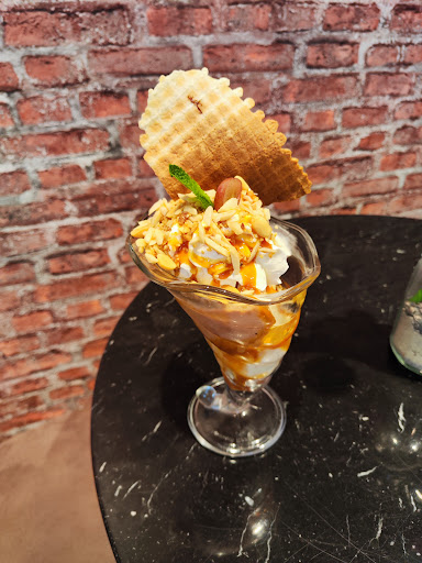 Sehr schönes Eiscafé/Restaurant. 🍝 Mich überzeugt vor allem das Gesamtkonzept: Stimmiges, mit Geschmack gestaltetes Ambiete, große Theke zum Bestellen mit 2 Schlangen (Eis To Go und Restaurantverzehr), SB Abholung, Abräumerwägen die flink und sauber geleert werden, klare Aufgsbenverteilung beim Personal. 👍