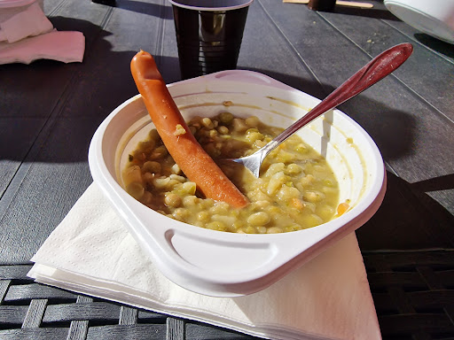 Ich war mit Freunden unterwegs. Auf dem Rückweg von der Talsperre kehrten wir bei diesem Imbiss ein . Laut Beschilderung sollte es eine "hausgemachte" Erbsensuppe geben . Da ich schon viele Jahrzehnte als Koch tätig bin . Fällt mein Urteil eher negativ aus . Das war die schlechteste Erbsensuppe die ich je gegessen habe. Ich würde mich in Grund und Boden schämen so etwas meinen Gästen anzubieten. Ganz davon abzusehen das die Suppe dazu noch aus der Dose war ( hier wird der Kunde ganz bewust getäuscht und betrogen ) . Jedem der das hier liest empfehle ich lieber wo anders essen zu gehen . Auch die Hygiene wird wohl nicht so ernst genommen . Nach Anfrage ob wir richtige Löffel bekommen können. Bekamen wir diese auch . Aber jetzt kommt's . Das Besteck war eventuell gerade abgewaschen worden und demnach noch etwas feucht , was die Servicekraft wohl nötige die Löffel an seiner Schürze...
