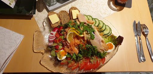 Read moreDas vegetarische Gerichte Bandnudeln mit Gemüse war fast gemüsefrei und die Nudeln haben unangenehm alt geschmeckt. Gebratene Mandelforelle war recht lecker. Der Hirschgulasch mit Klößen und Rotkohl wirkte insgesamt verkocht, wenig Rotkohl, viel breiiger Gulasch...ist Geschmackssache, aber für den Preis hatten wir alle mehr Klasse erwartet. Bedienender Herr war kaum zu verstehen, nicht direkt unfreundlich, aber etwas ungehobelt und semi-professionell. Muss nicht nochmal sein, wenn sich's vermeiden lässt, aber es gibt im Winter leider nicht viele Alternativen...