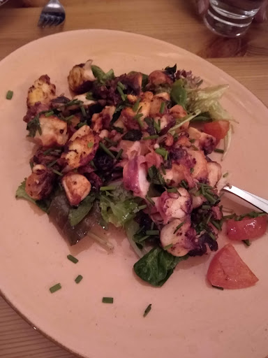 Das Lokal ist gemütlich und liebevoll eingerichtet und dekoriert, die Besitzer sind super nett und das Essen ist sehr lecker und empfehlenswert. Es gibt hier keine feste Karte, sondern Empfehlungen vom Chef, was er gerade so frisch eingekauft hat. Er geht auch auf Wünsche ein und empfiehlt individuell. Wir waren an zwei Abenden dort. Am ersten Abend hatten wir 2x Nudeln mit Gemüse und Trüffelkäse, 4 Gin Tonics und 2 Espresso für 79,50 Euro. Da passt das Preis-Leistungs-Verhältnis. Am zweiten Abend waren wir zu dritt und hatten zusammen einen Vorspeisensalat, 1x Bulgurgemüse, 2x Kalbsbäckchen, 1 Mango-Sorbet und Getränke. Da lagen wir preislich bei 182 Euro. Was mir da nicht so gut gefallen hat – wir bekamen den Salat für alle 3 in die Mitte gestellt, auf der Rechnung wurde er 3x mit 8,50 Euro abgerechnet. Und so groß war der Teller nicht in meinen Augen. Daher auch der Punkt Abzug. Ansonsten ist der einzige Nachteil der, dass man vorher nicht weiß was die Speisen kosten – eben weil es keine Karte gibt. Trotz allem hat uns das Konzept und das Essen überzeugt – wenn wir in der Nähe sind, kommen wir...