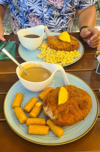 Im Gegensatz zu der wahnsinnigen Konkurrenz, in Thannhausens Gastronomie überangebot, wird hier noch wert auf die Garnierung und den optischen Eindruck des essens gelegt. Die Pommes und die Kroketten waren knusprig und das Fleisch des Cordon Bleu super gut. Der Burger sah sehr gut aus und war üppig belegt. auch das Patty war On Point gegrillt und super saftig ( das spricht für die gute Fleischqualität)
