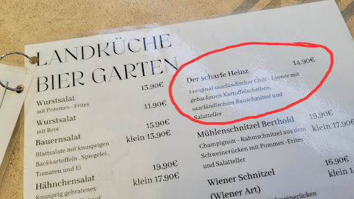 Read moreWir waren am Muttertag dort. Service war ok. Alles in Allem wäre es ein guter Restaurantbesuch gewesen. Als der Beilagensalat kam, wunderte sich meine Schwester bereits über die körnige Soße. Ich hatte den Hähnchensalat in groß. Ich hatte noch nicht die Hälfte davon gegessen als ich eine kleine Nacktschnecke auf dem Teller fand. Das kann immer mal passieren, kein Problem. Diesen Salat wollte ich jedoch nicht mehr weiter essen. Die Bedienung kam, nahm den Teller weg ohne ein Ersatzangebot oder die Frage ob ich vielleicht etwas anderes möchte. Alle anderen waren am essen und ich nach nicht mal der Hälfte fertig. Soweit so gut. Unverschämt war dann, dass man mir lediglich 2€ vom Preis erlassen wollte obwohl über die Hälfte zurück ging. Ich hatte die Schnecke leider zu spät entdeckt, so sagte man mir, denn ich hatte ja bereits gegessen. Sorry, dass die Schnecke nicht sofort am Anfang vom Teller gewunken hat. Der Salat war unserer Meinung nach nicht gewaschen, da er sehr körnig war, was wir auch angesprochen haben. So geht man nicht mit Kunden um. Letztlich musste ich zwar nur 11,90 von 19,90 zahlen. Aber so was ist frech und nicht Kundenfreundlich. Uns sehen sie...
