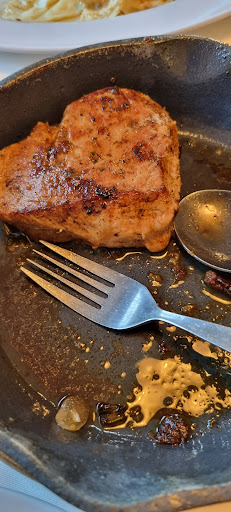 Bestellt wurde das Steak mit Zwiebeln, Kräuterbutter, Pommes und einem Beilagensalat. Essen war sehr sehr lecker, große Portionen, schön angerichtet, Preis Leistung mehr als gut!