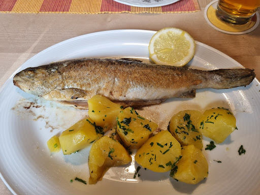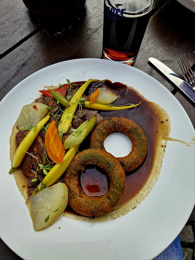 Es wurde ein Gericht des Hauses empfohlen (Bierbraten mit Kartoffelklos in einer Kümmelsoße) Dies wurde dann auch dreimal bestellt. Ein Wiener Schnitzel mit Kartoffelsalat und einen Zwiebelschmorbraten mit Maultasche und Spätzle. Der "Bierbraten" war sehr ecklig. Man hat entweder sehr dick oder einen sehr dünnen Schweinebauch bekommen mit viel Knorpel und Knochen noch am Fleisch. Der Kartoffelkloß war sehr wässrig und die Soße hat gefühlt nur nach Kümmel und Braten saft geschmeckt.