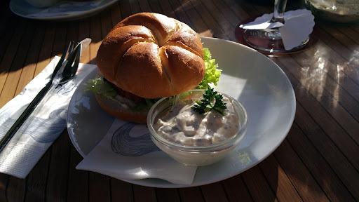 We intended to sit down shortly at the terrace to obey our thirst but we changed our mind that we have also obeyed to our little hunger. We’ve ordered fishcake burger (Fisch Brötchen). It certainly did the job and we left happily. We were welcomed for ordering only drinking as well.