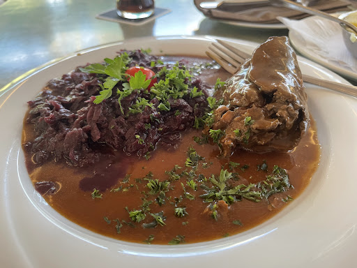 Nett und zuvorkommend war die Männliche Bedienung. Wir hatten Hirschgulasch und Wildschweinbraten. Hirschgulasch sehr wenig. Geschmacklich okay, habe aber schon besser gegessen.