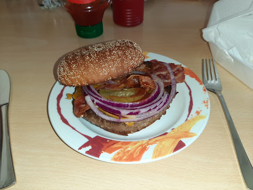 Edit: Leider muss ich meine Bewertung noch einmal anpassen. Das Essen ist wirklich sehr gut, jedoch wollten wir heute etwas zum Liefern bestellen. Nachdem die Person am Telefon bereits sehr unfreundlich war und nicht so gewirkt hat als hĂ€tte sie wirklich Lust auf ihre Arbeit, haben wir fĂŒr 2 Mini-Burger eine Wartezeit von 45 Minuten erhalten (innerhalb von Tirschenreuth). Nach ca. 1,5h Stunden war jedoch immer noch kein Lieferant da und da das Lokal bereits geschlossen hatte zu dieser Zeit, haben wir uns dann entschieden wo anders nochmal zu bestellen. Der Lieferant tauchte an diesem Tag auch nichtmehr auf. Es ist schade, da dieser Burger-Laden echt gut ist und Potenzial hĂ€tte, jedoch sowohl der Service wie auch die AtmosphĂ€re im Lokal sehr zu wĂŒnschen ĂŒbrig lassen.