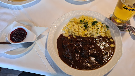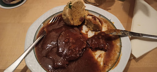 Read moreWir haben uns spontan dazu entschieden am Abend Essen zu gehen und telefonisch auf 18 Uhr reserviert. Die nette Dame sagte uns, sie hätten erst um 17 Uhr wieder geöffnet und auf 17:45 warme Küche. Das Wirtshaus machte auf den ersten Blick eine einladende Geste, während unseres Aufenthalts haben wir aber festgestellt, dass die Reste vom Mittagessen nicht beseitigt worden waren (Besteck und Essensreste am Boden, zerknüllte Serviette auf der Sitzbank, Ketchupflasche am Nachbarstisch, Sitzkissen zerknautscht und nicht frisch hingerichtet) Die Bedienungen waren freundlich und es wurden Änderungswünsche (ohne Aufpreis, obwohl angegeben) berücksichtigt, die Speisekarte hatte aber teilweise ganz andere Gerichte als im Internet drauf, war wesentlich kleiner und war nur ein Pack weißer DinA4 Blätter auf einem Holzklemmbrett. Hatte mich eigentlich auf Tagliatelle mit Lachs und Rieslingsosse gefreut, aber nicht nachgefragt ob es das trotzdem gäbe. Das Essen war die totale Katastrophe. Der Teller meines Mannes war unten mit Sosse beschmiert. Zur Rinderroulde gab es eine Karottensosse, die nicht wirklich dazu gepasst hat und uns beiden nicht geschmeckt hat. Der gemischte Braten selbst und die Sosse passten, waren aber insgesamt 3 grosse Scheiben Fleisch und viel zu viel. Zu beiden Gerichten hatten wir je einen Reibeknödel, welche aber nicht selbstgemacht, sondern wie Fertigknödel aussahen, ungesalzen und wässrig schmeckten und obendrein Grossteils auch noch roh waren. Der Preis für 2 Personen mit je einem Getränk war mit knapp 30 Euro ok. Das Essen hat uns beiden aber nicht gut bekommen, die ganze Nacht war...