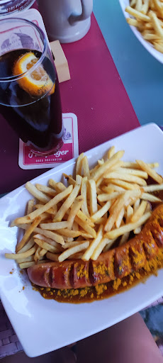 Heute mit meiner Frau eine Currywurst auf der Durchreise gegessen. 1 alkoholfreies Weissbier, 1 Apfelsaftschorle und 2 Currywürste mit Brot 26,10 Euro. (Curry mit Brot und lumpigem Curryketchup 8,80€)