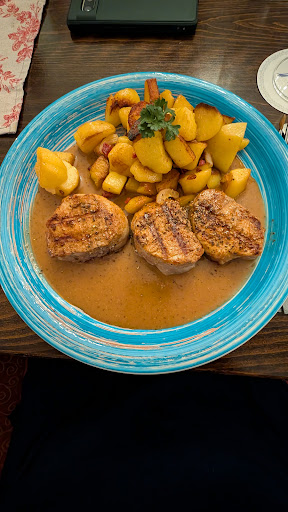 The menu, though limited, offers a selection of good dishes. The schnitzel is particularly noteworthy—crispy and flavorful, and the Riesling sauce that accompanies it is simply amazing. The risotto is also commendable, creamy and well-prepared. However, the Gulasch soup was disappointing, tasting more like it came from a can than freshly made.