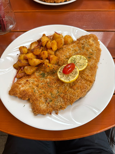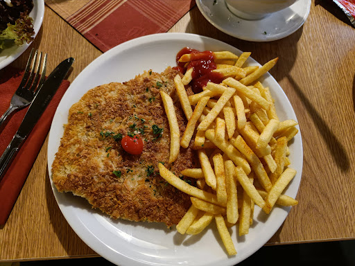 Read moreDie Gerichte sind gut zubereitet (das Wiener Schnitzel schön knusprig, gleichmäßig geklopft), die Preise günstig und die Bedienung freundlich. Warum also nur 3 Sterne? Das Hauptproblem, da waren wir uns alle einig, ist die sehr sehr kleine Auswahl auf der Speisekarte. Klein bedeutet 6 Gerichte, wovon 2 dasselbe sind (Schnitzel groß, Schnitzel normal) und eins eher schlicht (Ofenkartoffel).