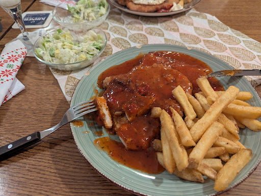 Read moreWaren nach langer Zeit wieder im Irmenacher Hof und wurden auf das Beste verköstigt. Wir hatten lange keine so guten Schnitzel gespeist wie hier. Der Chef kochte persönlich, es gab einmal ein Pfefferschnitzel und einmal etwas ganz einmaliges und nannte sich Sealappine Valtastand mit Salbei, rohem Schinken und mit Käse überbacken in Weißweinsoße. Eine große Schüssel toll angemachter Salat und herrlichen Pommes rundeten dieses Menü ab und einen Gruß aus der Küche mit zwei schönen Schoko und Erdbeerbechern waren noch die Krönung. Wir wollen nicht übertreiben aber es war für uns eine kulinarische Bereicherung. Vielen Dank ...