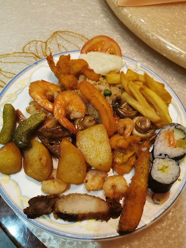 Read moreAnkunft war 19:30. Empfangen wurden wir recht herzlich und zu unseren Tischen geführt. Im Restaurant gab es keine Info für uns über Karte, Preise... Es war also klar alle essen Buffet da nach unserm Ausflug alle gut hungrig waren. Getränke wurden schnell aufgenommen und auch serviert. Das Buffet war teilweise sehr leergeräumt wurde aber auch teilweise schnell wieder gefüllt. Sushi war ab 20:30 leer auf Nachfrage hieß es heute kein Sushi mehr, sehr schade wenn das Buffet eigentlich bis 22:30 geht (21:30 letzte Anfangszeit, so wurde es zumindest von der netten jungen Servieskraft gesagt!) Ein Manko hier für uns die Soßen zur Auswahl gab es 3, Süß-sauer, Knoblauch und Erdnuss. Die Erdnusssoße haben wir nicht probiert, aber für unseren Geschmack waren die süß-sauer zu süß und die Knoblauchsoße war einfach fad, zusätzlich standen noch Ketchup und Majo bereit. Was uns allen fehlte war die Sweetchilisoße, wobei hier einfach Gescchmäcker verschieden sind. Die fertigen Gerichte waren tadellos und geschmacklich sehr gut.