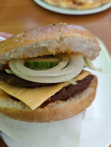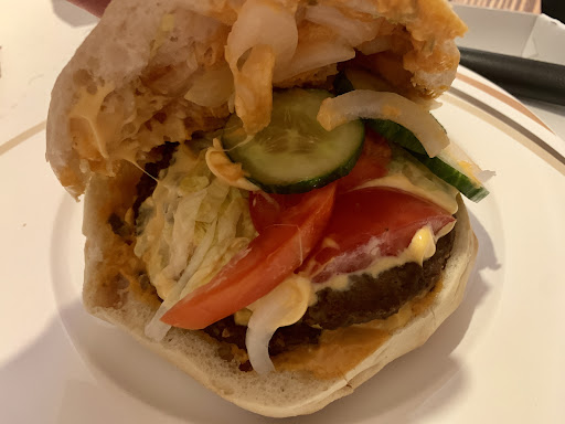 Die Pizza Hawai war noch warm und schmeckte lecker! Der Double-Cheese-Burger hatte eine gute Größe und war in einem Döner-Brot, was leider nicht so ganz passte! Jedoch war es mal was neues und er schmeckte.