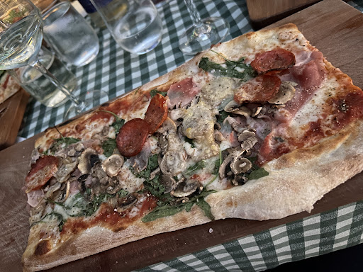 Read morePizza von durchschnittlicher Qualität. Uns erschließt sich nicht der Sinn längliche Pizzen zu machen. Die Holzbretter worauf die Pizzen serviert werden nehmen übermäßig Platz auf dem Tisch weg. Zu viert pizzaessen an einem Tisch nahezu unmöglich. Der Rucola wurde bereits vor dem backen auf die Pizza gelegt. Dadurch war dieser ausgetrocknet und verkohlt. Absolut sinnlos. Wartezeit fuer zwei Pizzen bei geringem Gästeaufkommen ca. 30 Minuten. Kellner war etwas reserviert. Obwohl leere Gläser /Karaffen am Tisch standen wurde nicht nach einem weiteren Getränk gefragt. Es wurde auch nicht nach Kaffee oder Dessert gefragt. Hier hätte man ggf. noch Umsatz machen können. Lediglich Pizzen und Vorspeisen in Speisekarte, Pasta-und andere Gerichte standen auf einer von unserem Platz aus nur schwer einsehbaren und teilweise undeutlich geschriebenen Aufstelltafel. Tischdecke leider sehr schmutzig. Hier herrscht für die Zukunft großes...