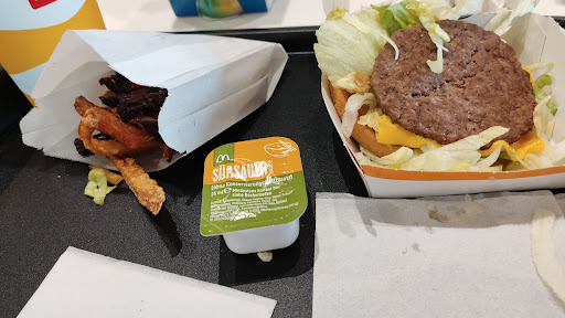 Read moreGebäude im Industriegebiet gelegen. Parkplätze vorhanden. Jedoch meiner Meinung alles sehr verschachtelt. Von der Einrichtung und Ausstattung her ein gewöhnlicher McDonalds. Wir waren zur Mittagszeit dort, es war sehr viel los. Es wurde weder kontrolliert ob die Daten erfasst wurden (weder Luca-App noch Zettelwirtschaft), geschweige denn auf die Hygienestandards geachtet. Wir saßen an dem Tisch genau vor den Bestellterminals. Wenn man da kuckt, wie viele Menschen den Bildschirm berühren, möchte man sich wirklich gerne wünschen, dass diese zwischendurch mal desinfiziert werden bzw. etwas dafür zur Verfügung gestellt wird, damit man selbst mal drüber wischen kann. Dies möchte ich mal als Verbesserungsvorschlag anmerken. Ansonsten war auch die Musik sehr laut. Manche Besucher hielten sich nicht an die Maskenpflicht und gingen vom Außenbereich durch den Innenbereich ohne Mund- und Nasenbedeckung. Vom Essen her, gibt es keine Beanstandungen - wie immer halt. Aber alles warm und ok. Personal wirkte sehr gestresst - aber wie gesagt war Mittagszeit und sehr stark besucht. Leider wurden auch nach dem Essen bzw. halt nach dem Verlassen des Tisches diese ebenfalls nicht desinfiziert. Das habe ich in letzter Zeit bei anderen McDonalds schon beobachten können, dass die Tische und auch sogar die Sitzbänke desinfiziert wurden. Sollte gerade in dieser Zeit eigentlich...