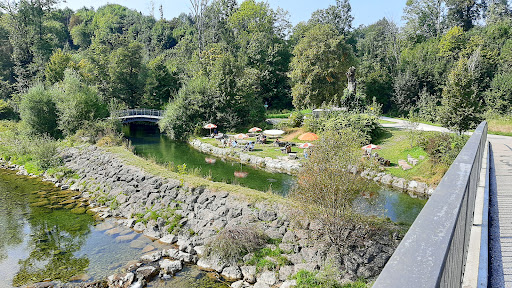 An sich deutlich schöner als auf den Bildern auf Google. Nettes Flair. Nette Bedienung. Eher einfach mit kleiner Auswahl. Ich würde anstatt den gemixten Stühlen und Biergarten-ähnlichen Sonnenschirmen diesen Teil noch modernisieren, der Rest ist schön. Mit Zugang zum Kanal und Schwimmmöglichkeit. Bester Part: tatsächlich mit EC Zahlung und das...