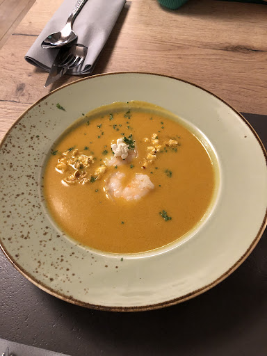 Read moreSehr positiv war die G2-Kontrolle beim Eintreffen im Lokal: Vorzeigen der vollständigen Impfung mit Personalausweis! Super, so soll es sein. Das Lokal selbst besteht aus einigen kleinen Räumen, etwas verwinkelt - war früher eine alte Mühle- aber sehr ansprechend und gemütlich mit schönem Mobiliar und sehr bequemen Stühlen ausgestattet. Die Bedienung ist ausgesprochen freundich und hilfsbereit. Weswegen nur 3 Sterne? Das Essen ist eher durchschnittlich, dafür aber doch hochpreisig. Die Bratkartoffeln erinnerten an den Rest aus der Pfanne, kleine Stücke, teilweise schwärzlich, die Entenbrust sehr fest und zäh. Im Ganzen war das Essen mit 4 Personen okay, aber auch nicht mehr. Allerdings: Bei einem voll besetzten Lokal sind 2 Bedienungen zu wenig, man mußte sich schon mehrmals bemerkbar machen zum nach bestellen. Fazit: Ein sehr gemütliches Lokal mit freundlicher Bedienung und verbesserungswürdiger Küche. Wir werden aber noch mal...