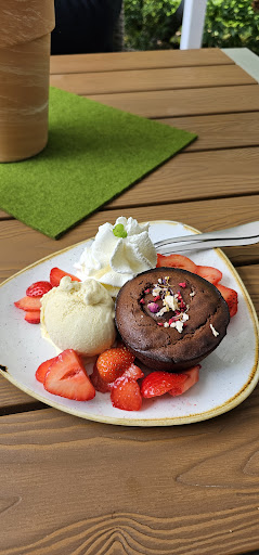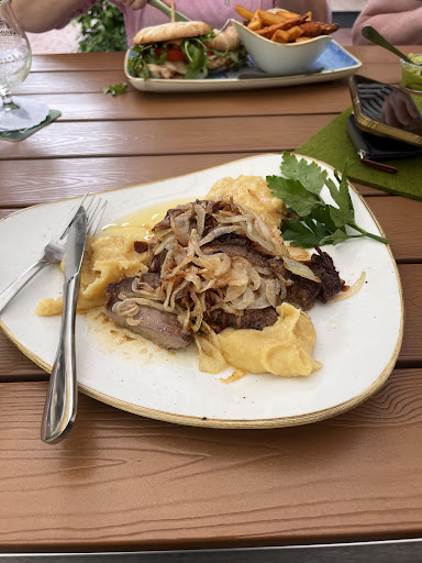 Uns hat es durch einen Krankenhausbesuch in Sabinchens Speisekammer verschlagen. Grundsätzlich ist das Ambiente im Außenbereich ansehnlich, aber nicht sehr detailverliebt. Dank des vielen Grüns geht da sicher noch einiges mehr und lässt den Charme einer normalen Imbissgaststätte gänzlich verschwinden. Der Service war super, ein freundliches Lächeln auf den Lippen und Smalltalk kann aber nicht schaden. Zum Essen... Ich hatte aus der Karte das neuseeländische Lamm an Rosmarinkartoffeln und Speckbohnen, meine Begleitung Hähnchenfilets in Parmesanpanade mit Nudeln und Tomatensauce. Das Hähnchenfilet wurde in der Fritteuse totfrittiert, die Tomatensauce war weit weg von tomatig und eher ganz nah an Tüte, die Rosmarinkartoffeln kamen bestimmt auch aus der Fritte und den Rosmarin hat man an den Kartoffeln zwar gesucht aber leider nicht gefunden. Die Bohnen waren gut und das Lamm schmeckte zwar nur ganz leicht im Abgang nach Lamm, war aber on Point gebraten. Als Nachtisch gab es noch ein Schokoladenküchlein mit flüssigem Kern mit einer Kugel Eis und Erdbeeren. Saisonbedingt waren die Erdbeeren sicher keine frischen örtlichen Erdbeeren (schmeckten jedenfalls nicht ansatzweise nach Erdbeere), dass Eis schmeckte auch eher nach Industrieware und das Schokoküchlein war garantiert auch irgendwas fertiges aus einer großen Industrieanlage, schmeckte jedenfalls hart nach Chemie.