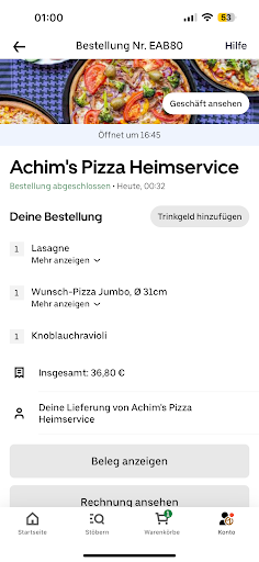 Read moreBevor ich diese Bewertung geschrieben habe ist mir erstmalig aufgefallen das dieser Zirkus bereits durch offensichtlich eigenes Verschulden auf eine unterirdische Bewertung von 2,9 gefallen ist, was auch mir als Geschäftsmann suggeriert das dieser Anbieter im unterem Segment angekommen ist. Letztmalig vor 2 Jahren bestellt und enttäuscht haben wir diesem "Unternehmen" eine weitere Chance einräumen wollen. 2 Pizzen und Tortellini mit Gorgonzola Soße. Bei letzterem war die Oberfläche Schwarz und die Soße zwischen der Pasta nicht mehr existent. Wir stornierten aus gutem Grund. Neue Nudeln wollte man nicht machen. Die Jungs brauchen ja Ihren wohl verdienten Feierabend. Aha. OK. Wir Essen und unser Gast bleibt Hungrig? Im Ernst? Geld sollte es auch nicht zurück geben. Man wollte eine Gutschrift verbuchen und den Kunden hungern lassen obwohl doch genau der lieber etwas essen wollte. Doppelt zahlen weil man das Geld nicht zurück bekommt und woanders bestellen muss kam natürlich nicht in Frage. Wir mussten mit einigem Nachdruck darauf bestehen das Geld für die es letztendlich keine Gegenleistung gab zurück zu bekommen. Heute waren sich alle einig. Bei dieser Qualität kocht man doch besser selbst. Danke für Ihre...