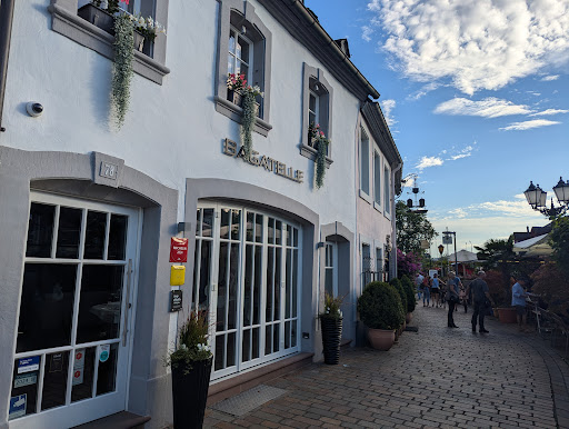 Das Restaurant „Bagatelle“ bietet am Ufer der Mosel eine sehr ansprechende gastronomische Leistung zu gehobenen, aber angemessenen Preisen. Den Gast erwartet eine kreative Küche, die ausschließlich frische Zutaten verwendet. Die individuell gestalteten und handwerklich sorgfältig zubereiteten Gerichte lassen die kraftvolle und persönliche Handschrift des Chefs erkennen. Das „Bagatelle“ hebt sich nicht nur preislich von den benachbarten „touristischen Versorgungseinrichtungen“ deutlich ab, sondern auch räumlich: Die Terrasse befindet sich unter einer gewaltigen schwarzen Schirmkonstruktion in einer Art Wintergarten, dessen Fenster sich zum Glück teilweise öffnen lassen, um der leicht klaustrophobischen Atmosphäre entgegenzuwirken. Aufgrund seiner Sonderstellung im Trierer Fremdenverkehrs-Hot-Spot Zurlauben wird das „Bagatelle“ wohl eher von einheimischen und Reisenden besucht, die gezielt nach dem besonderen Genuss suchen und sich mit der kleinen Karte begnügen, die nur drei Vorspeisen (durchschnittlich ca. 20,00 €), zwei Hauptgerichte (etwa 40,00 € ohne Sonderwünsche) und ein Dessert (12,00 €) bietet, außerdem ein vorgegebenes Drei-Gang-Menü für 59,00 €. Vor Ort gibt es noch die eine oder andere kleine Ergänzung. Wein wird fast ausschließlich in Flaschen, überwiegend in der Preisregion um die 30,00 € angeboten. Eine schriftliche Übersicht offener Weine habe ich nicht zu Gesicht bekommen.