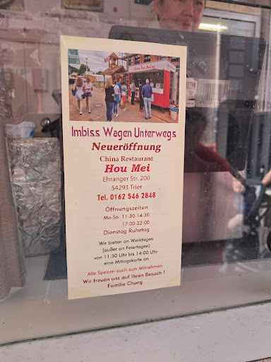 waren am verkaufsoffenen Sonntag den 07.07.2024 in Saarburg, als wir Lust auf chinesisches Essen hatten suchten wir den Imbiss Wagen von Hou Mei auf. Das Essen, wir hatten gute Portionen gebratene Nudeln 🍜 mit Hühnerfleisch und Gemüse, alles frisch und sehr lecker 😋 zubereitet für 6,- Euro. Das Team war sehr freundlich und hilfsbereit. Sehr gerne empfehlen wir den Imbiss Wagen von Hou...