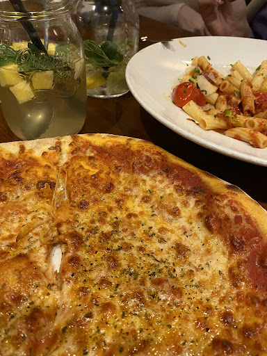Read moreThis one star is for the interior and the English speaking lady serving our table. Overall the food was below average and the only Italian thing in this restaurant is the name. For the first time I see every pasta served with big peace of bacon on top?? It was overcooked, tasteless with some sort of cheese that didn’t taste like anything. The pizza Margarita is suppose to be made with tomato sauce and MOZZARELLA cheese. Not some tasteless burned to black semi-cheese as you can see in the picture. Also the pizza wasn’t even cut in slices. But no worries, when you cut it, the pieces can stay straight like paper when you lift them, which means that the frozen pizza from Lidl is fresher than that. And on top of that, the kitchen didn’t even had a proper Italian oven otherwise the pizza’s would’ve been a little better. The “lemonade” is tap water with sirup and frozen fruits.. So like I said, nothing Italian...
