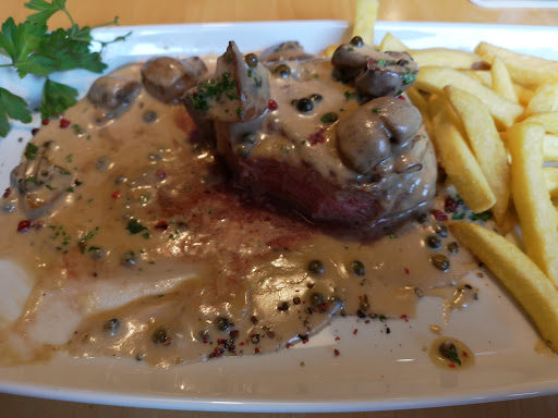 Die Bedienung - ein Student, seit drei Monaten als Aushilfe beschäftigt - gab dann weiter zu Protokoll, dass die Pilze 'aus' wären und es sich bei DEM KLASSIKER auch NUR um eine Frikadelle mit BRATENSOSSE handele - ok, auch gebongt und dennoch bestellt, der Geschmack und die Größe haben es noch immer rausgerissen. Meinem Kollegen war das zu wenig und er hat sich die Frikadelle mit Zigeunersoße bringen lassen (Zigeunerschnitzel kostet in gleicher ‚Ausstattung‘ 18,90).