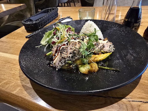 Vorspeise Frühlingsrollen lecker, allerdings vor Fett triefend und nichts besonderes. Hauptspeise Teriaky mit Garnelen sehr sehr lecker. Die Soße des rotes Curry mit Hähnchen war lecker, allerdings nichts mehr gemeinsam mit einem richtigen "Thailändischen Curry". Es befanden sich handgezählte 3 kleine Championhälften, 2 kleine Brokoli und zwei Bohnen in der Soße. Das war es auch schon an Gemüse. Wenn der Fusiongedanke hier ist kalten Salat in ein heißes Curry zu werfen..naja wers brauch.. Die Innenstücke des Hähnchens waren einskalt als kämen sie aus dem Kühlschrank. Nachdem ich dies freundlich reklamierte, wurde mein Teller einfach wortlos mitgenommen (ohne eine Entschuldigung oder ähnliches). Minuten später kam ein neues Curry bei dem das Hähnchen heiß war und dampfte (ebenfalls wortlos). Hier waren leider nur die Außenstücke genießbar. Innen war noch "glibber" weil es dort nicht ganz durch war. Geht bei Hähnchen gar nicht.