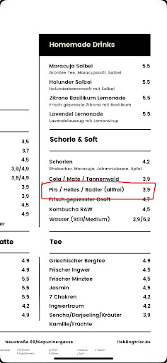 At that point, the server told us that the system lists both drinks under the same name, which we understood. However, when we clarified again that we had ordered the non alcoholic one, the server abruptly raised his voice and insisted multiple times that we had ordered the alcoholic Radler, adding that there is no alcohol-free option.