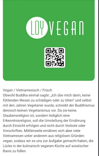 Read moreHaben auch ohne Reservierung, am frühen Montagabend einen Tisch bekommen. Ich denke daß das am Wochenende nicht geklappt hätte. Hier würde ich dann immer vorab reservieren. Ich habe Pho Xao gewählt. Gebratene Reisbandnudeln mit Tofustreifen, verschiedene Gemüse und Kräutern und Gewürzen. Bin normalerweise durchaus Fleischesser, aber das vegane Essen hat mich Fleisch nicht vermissen lassen. Die Würze war kräftig, aber passend, höchstens für das Gemüse etwas zu dominant. Aber das ist wohl Geschmackssache. Jedenfalls war es sehr lecker. Als Nachtisch hatte ich Mango mit Klebreis umwickelt und mit Kokosmilch. Das war aber nicht so, wie ich es erwartet und erhofft hatte. Tatsächlich war es ehe eine Reisrolle, mit einem Streifen mango in der Mitte. Das ganze hat ähnlich wie herkömmlicher Milchreis geschmeckt, durchaus nicht schlecht, aber eben nicht nach Mango. Die Begrüßung und der Service war sehr nett und freundlich. Die Preise sind angemessen und fair. Einzige Ausreißer finde ich das Wasser. Für 0,75 Liter Wasser, auch wenn es gefiltert ist, sind 7,50 Euro definitiv zu teuer. Trotzdem kann ich einen Besuch unbedingt empfehlen, nicht nur Veganern, Vegetariern, sondern auch jedem anderen, der eine interessante Küche...