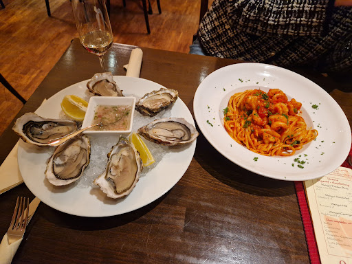 It's an amazing bar in the center of trier if u like proper done Fisch, not everyplace can cook it properly, I know it because I work with it, I ate an amazing rotbarsch filet with rice and kind of sahne-chili sause, it was amazing , perfectly cooked, the rice moist, and both really tender. My boyfriend asked for Schwertfisch, and omg, it was so juicy, (here we need to add all the plates have a nice size, but for example less Salat with the Schwertfisch and some Bratkartoffeln will be nice, especially with that good quality of meat/ same with the rotbarsch). The prices are good, they have offers for Austern and Sekt for good price. The best it's the wine we drank there (Hauswein) it was amazing. The bar has a cool upper floor , where u can make wine tasting..it's full of photos from different regional wine vines, with all the explanations from every bottle and u can buy them as well!. The bar is kind of Hiden but Massive inside. I...