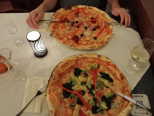Read moreLekker een dagje door het centrum van Trier "spaziert ". Was lekker gezond koud. Dus na een tijdje krijg je vanzelf wel trek in iets. Hadden deze pizzeria al bij het rondlopen zien liggen, En zagen toen al door de ramen dat er grote pizza's werden geserveerd. Wij naar binnen. Was rond 13.00u en was er druk. Werd ons vriendelijk verzocht even te wachten op een vrije tafel voor 5 personen. Werden na ongeveer 10 minuten naar een vrije tafel voor 5 man gestuurd. Plaats genomen. Kregen de menu kaarten uitgedeeld. Drinken besteld. Zaten in de tussentijd rond te kijken, verbaasde ons over de grote van de pizza's. Nadat we de diverse drankjes hadden gekregen. Pluspunt was dat de drank uit een flesje netjes werd uitgeschonken in het glas . Goede service verlening. Plus plus!!!!! Nu werden de bestellingen van de diverse pizza's opgenomen. En toen kwamen de borden met de pizza's. Passen en meten met die borden op tafel, glazen werden verschoven. Nou het paste net op tafel. Wij zaten met grote open ogen van verbazing te kijken. Zeiden tegen elkaar. Nou dan beginnen we maar. En zien wel waar het schip strand. Punten snijden en happen. Smaakte voortreffelijk. Zeer dunne bodem. Maar zeker geen verbrande bodem van de pizza. Was ook niet nat of soppig. Dus gewoon goede pizza. Goede ingrediënten op de bestelde pizza's. Maar eind van het verhaal is dat we ze wel hebben op gekregen. Dus neem de tijd en zorg voor een goede gezonde trek, anders is het echt zonde om niet de gehele pizza op te kunnen eten. Moet daarbij dan wel een kanttekening maken. LET OP: Als je een pizza gaat bestellen, gaan ze er vanuit dat je een grote pizza besteld. Maar op de kaart staat duidelijk aangegeven KLEINE of GROTE PIZZA. Wij hadden dus duidelijk gevraagd wat voor "size" pizza we zouden krijgen. Dus de grote pizza. Vraag na en laat je niet verrassen. Maar al er al hebben we met smaak en plezier de bestelde...