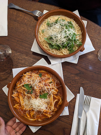 We ordered a Napolitan Bruschetta as apetizzer, it was really good and it came with a side fresh salad. For main dishes we had Cacio e Pepe, which had a soft balanced flavor and Casarece with bolognese, which was really tasty and reminded us to a bolognese we had only tasted from italian friends' traditional cooking.