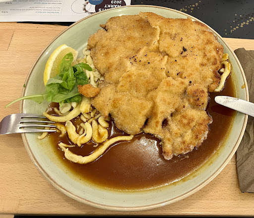 Hallo, meine Familie und ich wohnen in der Nähe des Restaurants. Heute, 31.10. haben wir Ihr Restaurant gegen 14 Uhr besucht. Vor dem Eingang standen sechs Personen. Wir haben etwa 5 Minuten gewartet. Die Leute vor uns hatten nicht die Geduld, auf jemanden zu warten, der sie abholt, und sind alle nach und nach gegangen. Nach ein paar Minuten holte uns schließlich eine Dame ab. Wir setzten uns und bestellten sofort zu Mittag. Die Wartezeit auf das Essen war nicht lang. Wir sahen zu, wie andere Menschen vergeblich am Eingang warteten, um abgeholt zu werden. Alle Mitarbeiter konnten sie sehen, aber niemand unternahm etwas. Zwei ältere Menschen und ein Herr, der sich an einen Rollstuhl lehnte, standen dort mehrere Minuten lang - eine Katastrophe und respektlos gegenüber älteren Menschen. Wenigstens der Barista auf der gegenüber Seite musste es sehen!!! Schließlich nahm sie jemand auf und setzte sie in unsere Nähe. Sie bestellten einen Pflaumenkuchen, Cappuccino und Kaffee. Kein Essen. Nach 10 Minuten später hatten sie nichts. Dann standen sie einfach auf, sagten dem Kellner, er solle die Bestellung stornieren, und gingen nach Hause. Das Restaurant war drinnen fast leer, draußen halb voll. Die Bedienung war sichtlich schlecht gelaunt oder hatte einen schweren Kater. Ich schreibe eigentlich nie Kritiken, aber hier hat es mir gefallen. Mit diesem Ansatz wird das Restaurant bald geschlossen. Ich bete, dass das nicht der Fall sein wird. Ich...