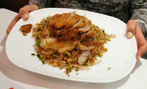 Read moreZum Abendessen wurde mal Chinesisch bestellt und selber abgeholt. Der Gastraum wirkt auf den ersten Blick sauber, auf dem zweiten Blick fallen dicke Staubweben in Ecken und der Decke auf. Aber ich wollte es eh mitnehmen. Bestellt wurde WanTan Suppe, knuspriges Huhn in Kokos und gebackene Banane. Die WanTan Brühe war eine Hühnerbrühe, leicht zu stark reduziert, oder überwürzt. Mit jedem Löffel wurde es salziger. Die Gemüseeinlage war überschaubar, die Teigtaschen in der Miniausgabe. Konnte man aber insgesamt Löffeln, nur nochmal gönne ich mir die nicht. Das Hauptgericht schmeckte nicht nach Kokos, die Gemüseeinlage umfasste 2 geviertelte Champions, Unmengen Möhrenschnitze 3 Bambusstreifen, Zwiebelspalten und 2 Stücke Lotoswurzel. Von Paprika, Knobi und Lauchzwiebel (nach Angabe in der Speisenkarte) fehlte jede Spur. Leicht salzig / scharf und sehr flüssig war die Soße, jedoch mit dem Reis ging es gut. Das im Tempurateig gebackene Hühnchen war weich und insgesamt salzig. Für die gebackene Banane wurde der selbe Teig verwendet und auch dieser war leicht salzig.