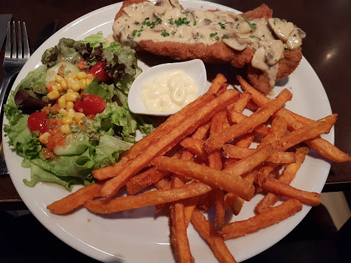 Read moreMan kann man hier gemütlich sein Bier trinken oder einen Cocktail schlürfen. Zudem gibt es eine Auswahl an Shoots, Longdrinks und Whisky. Was das Essen betrifft, findet man Fingerfood, Flammkuchen, Salat und Pfannengerichten. Die Thailändische Küche hat zudem ebenfalls nun die kulinarische Vielfalt erweitert.