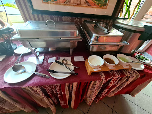 Read moreEndlich ein indisches Restaurant in der Nähe...! Wir haben das Samstagsbuffet ausprobiert. So konnten wir uns ein (Geschmacks)Bild von verschiedenen Gerichten machen. Es gab eine Tomatensuppe und gemischten Salat als Vorspeise. Hauptgerichte aus Hähnchen, Lamm, Fisch und vegetarisches. Alles in einer anderen Sauce/Zubereitungsart. Dazu typisch Papadam und Naan-Brot und auch Reis. Vom Schärfegrad her dürfte es für meinen Geschmack noch ein Schüppchen mehr sein. Aber ich denke, das ist wirklich Geschmackssache. Rundum abgestimmte Rezepte, kein Gewürz, das (negativ) dominierte. Ein kleines Manko, das aber generell den Warmhaltegeräten geschuldet ist: das essen war nicht heiß, es war lediglich warm. Dennoch genießbar und sehr lecker! Ein indischer Nachtisch, den ich bisher nicht kannte, hat uns umgehauen: ein "Mus" aus Möhren, Milch, Zucker und Nüssen. Sehr überraschend und gut! (erinnert ein bisschen an Milchreis - geschmacklich und Konsistenz) Bedienung freundlich und aufmerksam. Ambiente könnte meiner Meinung nach weniger europäisch sein. Aber es ist trotzdem gemütlich. Restaurant war nicht überfüllt. Aber ein Anruf, ob ein Tisch reserviert werden sollte tut nicht weh. Preis - Leistung für das Buffet völlig in Ordnung. Das nächste Mal werden wir à la Carte essen. Was das dann preislich ausmacht, werden wir dann sehen. Sind jedenfalls nicht das letzte mal dort gewesen.