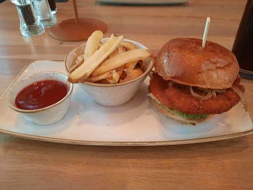 As an American, I'm always excited to go to "American " restaurants in Europe. The Ash is beautiful. I especially love the bar wall that goes all the way to the ceiling. Apparently, they have a DJ setup and offer music for events. In addition to this, they have the most comfortable chairs. As for the food, my husband and I both ordered the chicken burger with steak fries. My German husband loved it. I, on the other hand, did not which is really disappointing since I love a good chicken sandwich. In all fairness, the chicken itself was amazing. However, that breaded coating was so bland that the vegetables and honey mustard sauce couldn't save it. I didn't have the cheese as I don't need it on my chicken. My advice would be the following: offer it marinated and grilled in addition to deep frying it, change the breading to something with seasoning included and offer some different sauces like ranch and BBQ. The wait time for the food is a little long, especially when our meal was all fried. I'm not trying to be mean but constructive with my feedback. I have yet to find truly decent American food in Germany. So hire an American or consult one. It's a really nice place to go to. I hope to come again someday. Last thing, the ketchup for the fries...