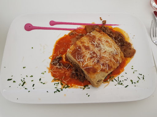 The atmosphere was great. Although not overbooked, we had to wait for our order the eternity. We waited for over an our to get the main dish, and another 20 min after we'd asked for some bread. The water has not been brought in the beginning as asked, but rather after a second reminder, another 15 min delay. A little attention to the table was paid by the time we were about to foot the bill. Some dishes are extremely overpriced compared to the size, like a simple salad, not even consisting of one whole cucumber and a tomato, with two slices of feta cheese on the top, already 9€. The view from the terrace made up a little for the sloppiness of the staff though. Makes it easy to imagine you were at the sea side.. the food itself was delicious indeed, no complaints there, baby calamari from grill taste almost like the ones you may get in Greece. Olive bread was delicious, I believe they make it...