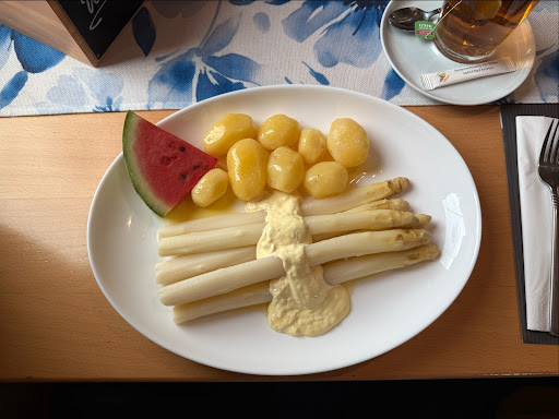 Read moreIm Restaurant hat es nach Zigaretten gerochen, zudem war der Gastraum sehr kalt. Die Bedienung war zwar bemüht aber leicht überfordert. Zudem war das Essen lieblos angerichtet. Bestellt hatte ich Spargel mit Sauce Hollandaise, bekommen habe ich Spargel mit zerlassener Butter. Auf meinen Hinweis hin wurde behauptet ich hätte es bei der Bestellung nicht gesagt, was jedoch nicht stimmte. Preise übertrieben für die Leistung und Qualität. Zudem wurde bei der Zahlung einfach 40 Cent mehr abgerechnet als auf der Rechnung ausgewiesen war. Absolut nicht...