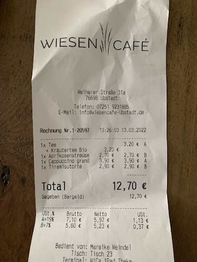 Read moreDas Lokal ist modern und hell eingerichtet. der Garten sehr schön angelegt und alles gepflegt. Wir waren schon zum Kaffee mal da. Da war alles seht gut, Kuchen super lecker. Diesmal waren wir zu zweit zum Frühstück. Wir hatten das Kornblume Frühstück. Ich fand es eindeutig zu teuer, da es für das Croissant und die zwei Brötchen genau je eine Scheibe Salami, Lyoner, Käse und ein Stück Camembert gab. Dazu wahlweise Marmelade oder Honig und ein -kaltes- Spiegelei. Den Kaffee muss man ja auch noch extra bezahlen. Der Orangensaft war auch nicht dabei. Ein kleiner Obstsalat ist noch dabei, was aber den Preis nicht rechtfertigt. Den zweiten Kaffee haben wir nicht bekommen. Irgendwann wollten wir noch eine Saftschorle, die auch erst nach nochmaliger Aufforderung kam. Für den Service daher nur zwei Sterne. Alles in allem haben wir über 50€ bezahlt. Da gibt es woanders mehr für das Geld. Zumindest der 1. Kaffee sollte dabei sein. Zum Kaffee trinken kommen wir gerne wieder, aber Frühstück finde...