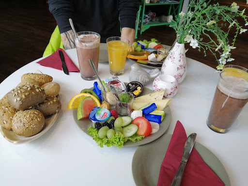 Read moreDie Bedienung ist supernett! Wir durften unseren Hund ohne Probleme mit hineinnehmen und er bekam sogar extra einen Napf Wasser hingestellt. Das Frühstück kam superschnell und war sehr hübsch angerichtet. Die Brötchen sind sehr lecker und ziemlich klein. So kann man gut alles testen, was so auf dem Teller liegt. 😉 Ich hatte mehrere Sorten Käse, Hummus, Marmelade und verschiedene Sorten Obst und Gemüse. Ein Glas O- Saft und ein Heißgetränk sind im Preis mit drin. Wir werden gern wiederkommen! Übrigens gibt es das Frühstück bis 13 Uhr. Das ist uns Langschläfern sehr entgegen...