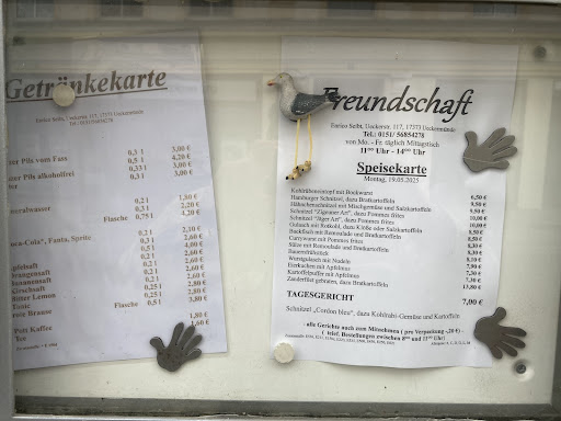 Read moreEin wirklich guter Mittagstisch zu Superpreisen, mit einem Tagesgericht und Speisekarte an der Tafel, Gerichte wie früher zu Hause bei Mutti. Man bestellt und bezahlt an der Theke, schnappt sich Besteck und Serviette, nach cem Essen bringt man Teller und Besteck wieder zurück. Der Koch uns seine Frau, die das Essen und die Getränke bringt, sind sehr freundlich und liebenswürdig. Es ist wie ein Mittagstreffpunkt für ganz Ueckermünde und Touristen wie wir fühlen sich ausgesprochen wohl zwischen Hausfrauen, Rentnern, Handwerkern von den umliegenden Baustellen oder Yachtbesitzern aus der Werft nebenan, Angestellten der Geschäfte oder Baumärkte,, sogar neben dem Bürgermeister haben wir mal gesessen. Also, unser...
