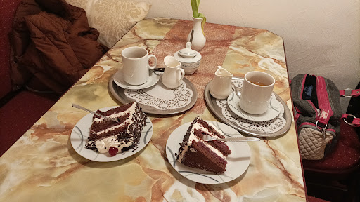 Die Gefälligkeitsbewertungen konnten wir nicht nachvollziehen Der Kaffee schmeckt billig, ist viel zu stark. Kaffee Cream, Cappuccino haben wir bestellt, ohne ein Wort wurde Filterkaffee serviert. Wir haben uns unterschiedliche Kuchenstücke bestellt. Allesamt alt und trocken Die Preise sind dem Markt üblichen angepasst aber nicht gerechtfertigt Die Besitzer(?) unterhielt sich mit ihren Bekannten im Gastraum sehr hässlich über eine nicht anwesende Servicekraft....