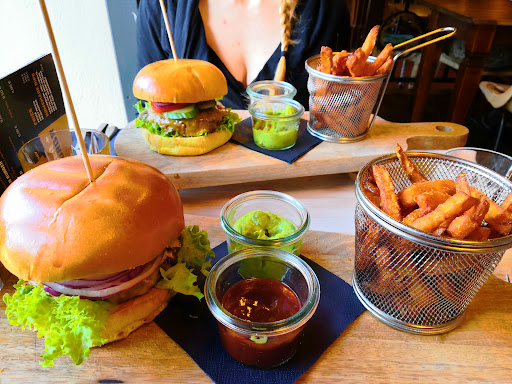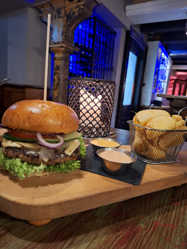 Read moreDas Essen und der Service sind absolut top. Die Bedienung war immer freundlich, das Essen war frisch und lecker. Die Dips haben uns 3 wirklich gut geschmeckt, die Pommes waren ober lecker und die Burger sind saftig und gut wie man sich es wünscht. Ansonsten gilt es zu erwähnen, dass man nach einer Abgabe von Pfand (war ein Ausweis bei uns) über eine etwas enge, alte Wendeltreppe in den 1. Stock kommt, wo mehrere gemütliche, lederne Sitzmöglichkeiten auf einen warten. Außerdem ein Billardtisch, 2 Kicker und ein Fernseher. Soweit ich gesehen habe, hatte der wohl auch Prime, Netflix und Co. Haben wir allerdings nicht genutzt. Zudem sind die Toiletten sauber und ordentlich. Auf der Damentoilette befinden sich zudem Hygiene-Artikel für den Notfall. Noch nicht selbstverständlich und dafür umso schöner für alle Damen in Not ^^ danke dafür!