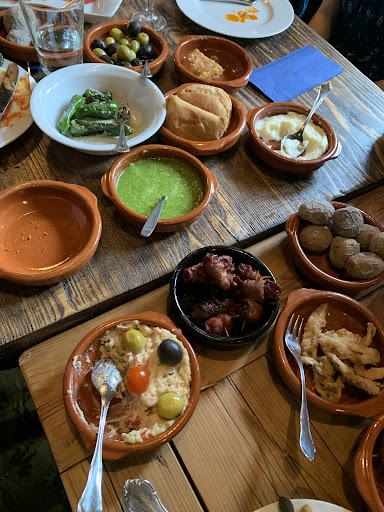 Read moreScheinbar muss sich da noch einiges einspielen, denn wir wurden von wechselnden Bedienungen das Gleiche gefragt. Die Bestellung kam überhaupt nur dadurch zustande, dass ich beim zweiten Mal darauf bestand, dass sie noch einmal komplett aufgenommen wird. Aber das sind lächerliche Kleinigkeiten. Ganz großes Lob für die Idee mit dem Brotkorb der leckeren Mojo Rojo Soße und dem Alioli. Das kostet doch weder Arbeit noch Geld und vertreibt einem lecker die Zeit bis das Essen kommt. Leider hat diese Geste manch Italienier schon aus dem Programm gestrichen. Zum Erstbesuch bestellte ich mir die Plata de Tapa Variadas als "gemischte Tapas". Was da kam, sah gut aus und schmeckte auch teilweise ganz gut. Die Paprika-Salami war nicht mein Geschmack, aber das könnte bei dieser Wurstsorte mein persönlicher Eindruck gewesen sein, obwohl ich in Spanien schon sehr leckere Salamis gegessen habe. Die Salzkartoffeln waren lecker, aber das ist nun auch keine Kochkunst. Die Krebsbällchen scheinen Convinience Food zu sein und haben hoffentlich auch einen Anteil Krebsfleisch ? Die Teigtaschen waren ganz nett. Die Sardinen waren gut. Die Würstchen waren fürchterlich überwürzt. Das Stück Tortilla war gut. usw. usw. Überragend oder in besonderer Erinnerung blieb nur der leckere gebackene Ziegenkäse vom Teller meiner Tischgenossin. Insgesamt mutet die Platte wie ein Haufen Reste an. Mit einzelnen Tapas ist man nach meinem ersten Eindruck besser bedient. Ich werde wiederkommen und der Küche weitere...